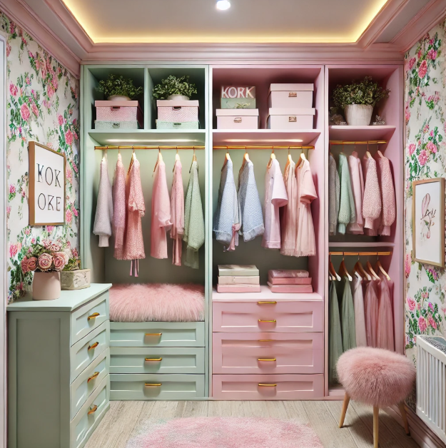 - Personal Touches: The environment can be made more inviting through the use of wallpaper accents and personalized labels as well as velvet-lined drawers.