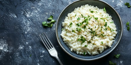 • Ingredients: Arborio rice, chicken broth, parmesan, white wine.